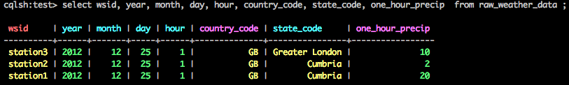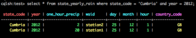 that weren't part of the original primary key. I updated the original primary key to: PRIMARY KEY ((wsid), year, month, day, hour, state_code) and