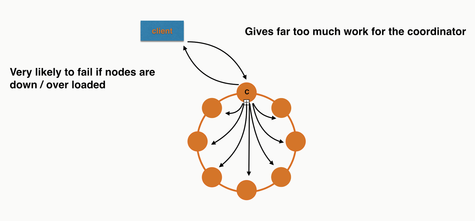 amount of pressure on a single coordinator. This is because the coordinator needs to forward each individual insert